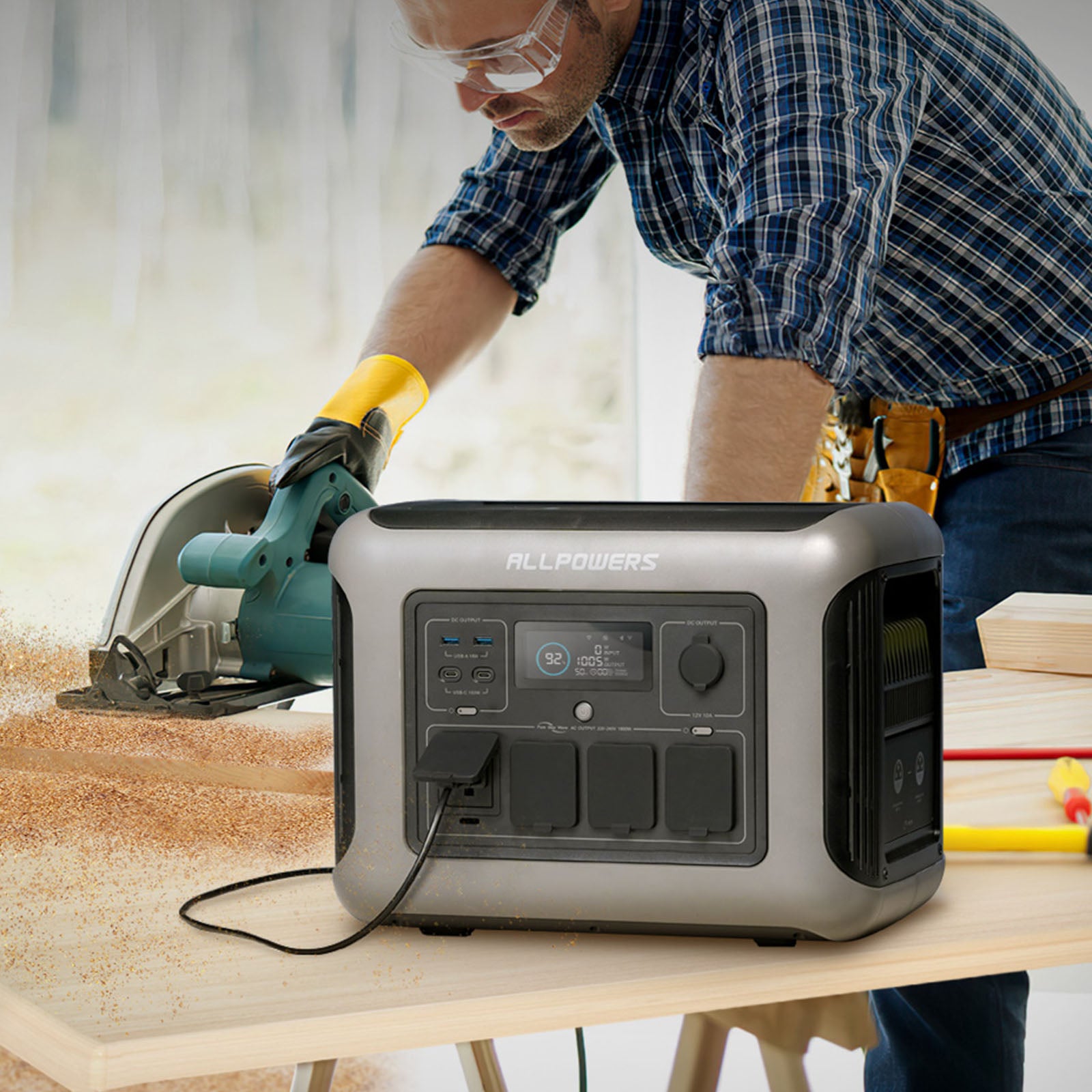 The R1500 has a 1800W AC output (3000W peak), allowing you to power devices with a rated power of up to 1800W and a peak power of up to 3000W.