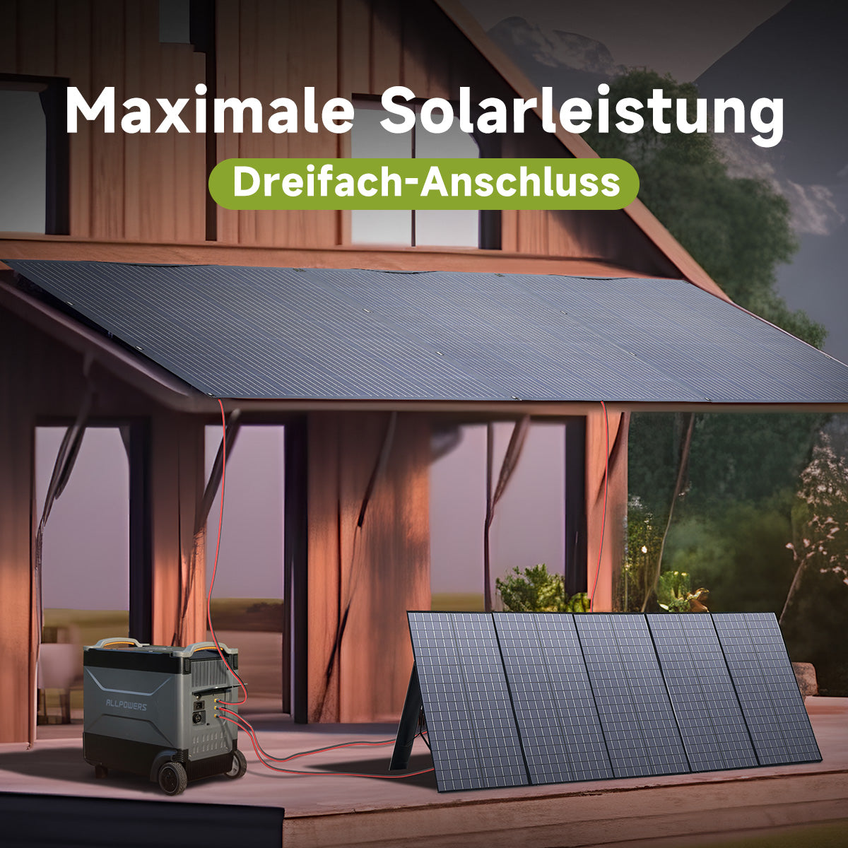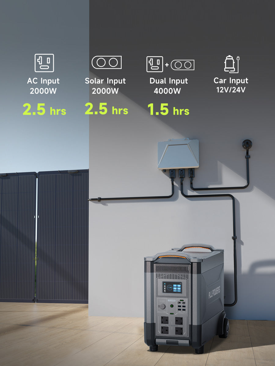 The R4000 has an XT60 port for a maximum of 2000W solar input. You can use a 12~60V 13A solar panel to charge.